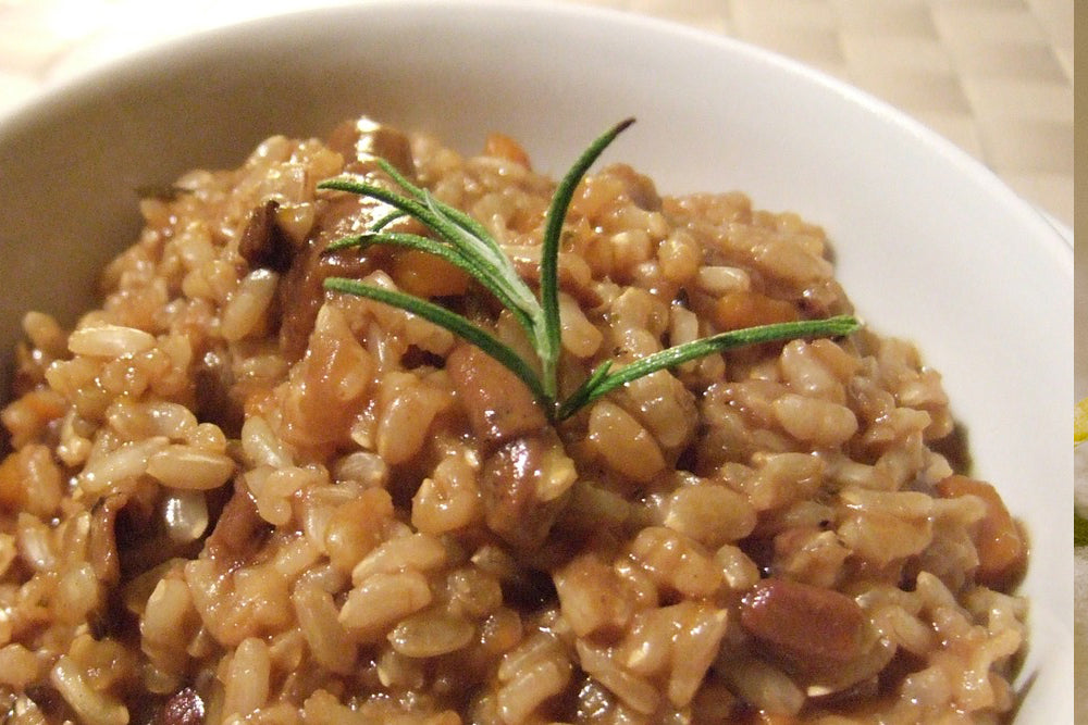 Use any kind of mushrooms you like in this risotto.